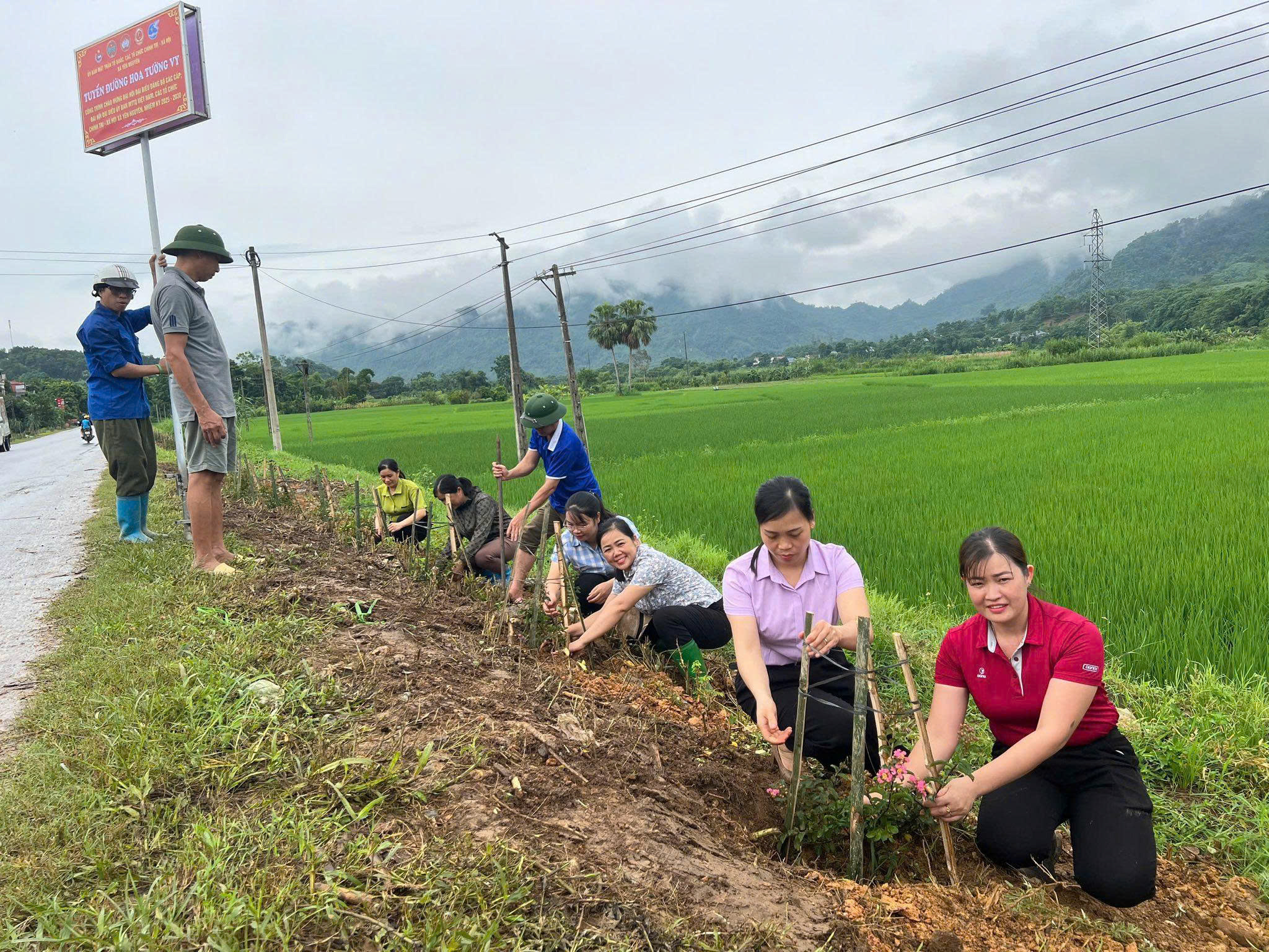 Ủy ban MTTQ và các tổ chức chính trị - xã hội xã Yên Nguyên vận động nhân dân tham gia trồng tuyến đường hoa