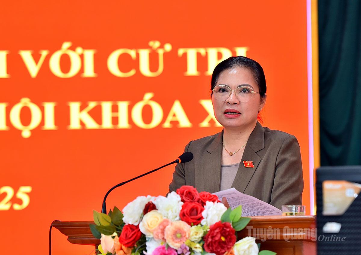 Tại Hội nghị, đồng chí Phó Trưởng đoàn chuyên trách Đoàn ĐBQH tỉnh Ma Thị Thúy đã thông tin đến cử tri một số nội dung quan trọng dự kiến được xem xét, thông qua tại Kỳ họp thứ X, Quốc hội khóa XV; tình hình phát triển kinh tế - xã hội cả nước 8 tháng đầu năm 2025 và hoạt động của Đoàn ĐBQH tỉnh trong thời gian qua.