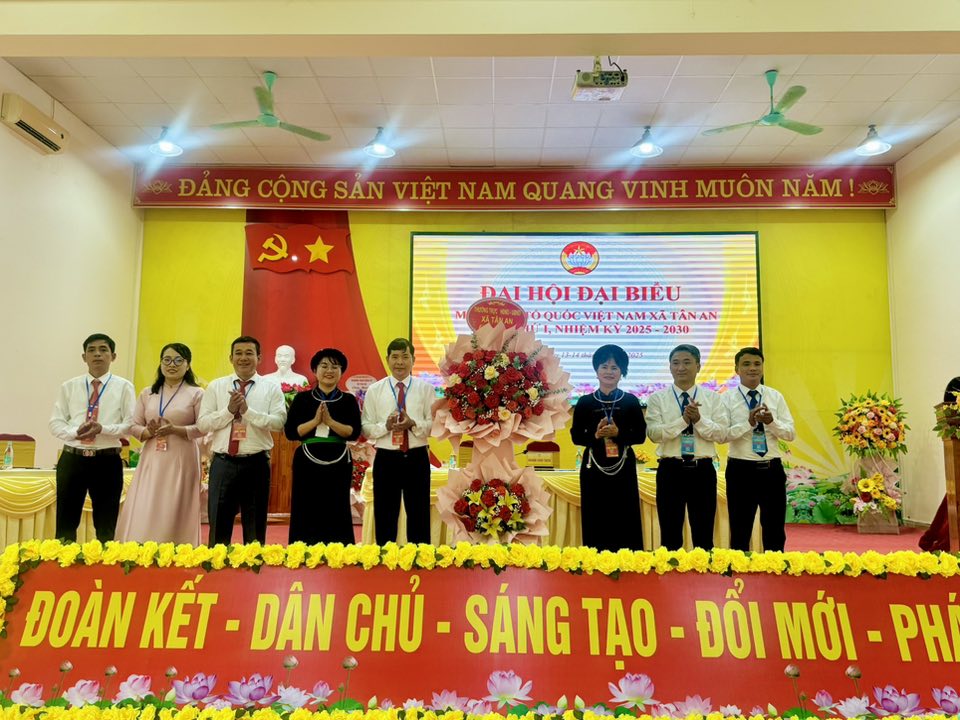 Lãnh đạo Đảng ủy, HĐND, UBND xã Tân An tặng hoa chúc mừng Đại hội đại biểu MTTQ xã Tân An lần thứ I, nhiệm kỳ 2025 - 2030