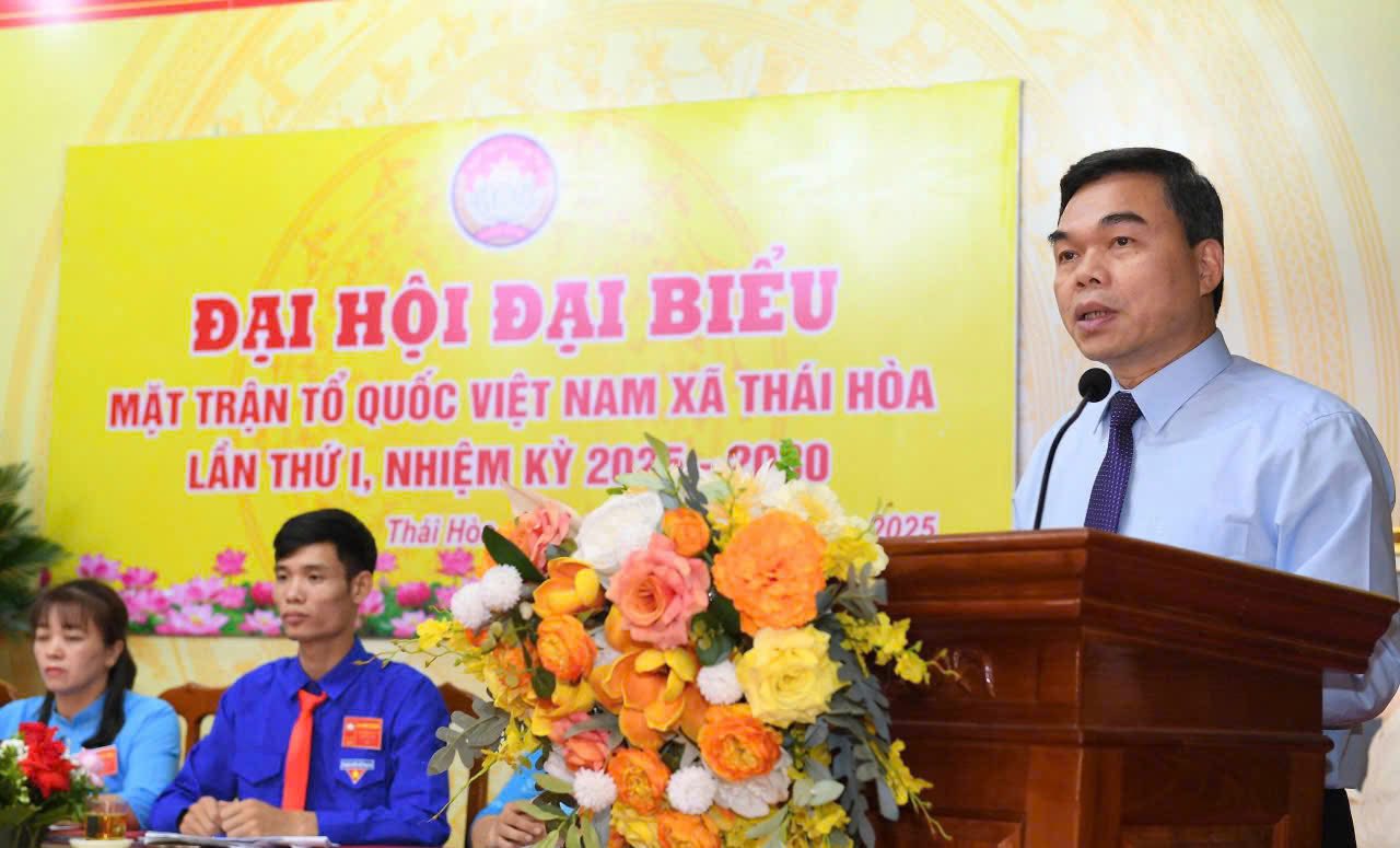 Phát biểu chỉ đạo tại Đại hội, đồng chí Ma Thế Hồng đã ghi nhận và biểu dương những kết quả mà MTTQ xã Thái Hòa đã đạt được trong nhiệm kỳ qua. Đồng thời đề nghị MTTQ xã tiếp tục tăng cường củng cố, phát huy khối đại đoàn kết toàn dân tộc, đẩy mạnh quán triệt và thực hiện hiệu quả chủ trương của Đảng, chính sách, pháp luật của Nhà nước; phát huy sức mạnh của khối đại đoàn kết góp phần giữ vững an ninh chính trị, trật tự an toàn xã hội trên địa bàn. Cùng với đó, tiếp tục đổi mới mạnh mẽ nội dung, phương thức hoạt động của MTTQ và các tổ chức chính trị - xã hội theo hướng tập trung về cơ sở hoạt động thực chất, hiệu quả; chú trọng xây dựng và nhân rộng các mô hình tốt, các làm hay, điển hình tiên tiến; tuyên truyền, vận động, tập hợp các tầng lớp nhân dân tích cực tham gia các cuộc vận động, các phong trào thi đua góp phần thực hiện thắng lợi các nhiệm vụ, mục tiêu đề ra. Đồng thời MTTQ xã cần phát huy vai trò giám sát, phản biện xã hội theo hướng có trọng tâm, trọng điểm, những vấn đề liên quan trực tiếp đến quyền, lợi ích hợp pháp, chính đáng của nhân dân; tăng cường tổ chức hoạt động đối thoại giữa người đứng dầu cấp ủy, chính quyền với cán bộ Mặt trận và nhân dân. Chủ động tham mưu, đề xuất với cấp ủy, chính quyền về những cơ chế, chính sách phù hợp với thực tiễn, giải quyết những vấn đề mà nhân dân mong đợi. Tích cực tham gia thực hiện sắp xếp tổ chức, bộ máy của hệ thống chính trị tinh gọn, hoạt động hiệu lực, hiệu quả, đảm bảo tính thống nhất, phù hợp với điều kiện thực tiễn.