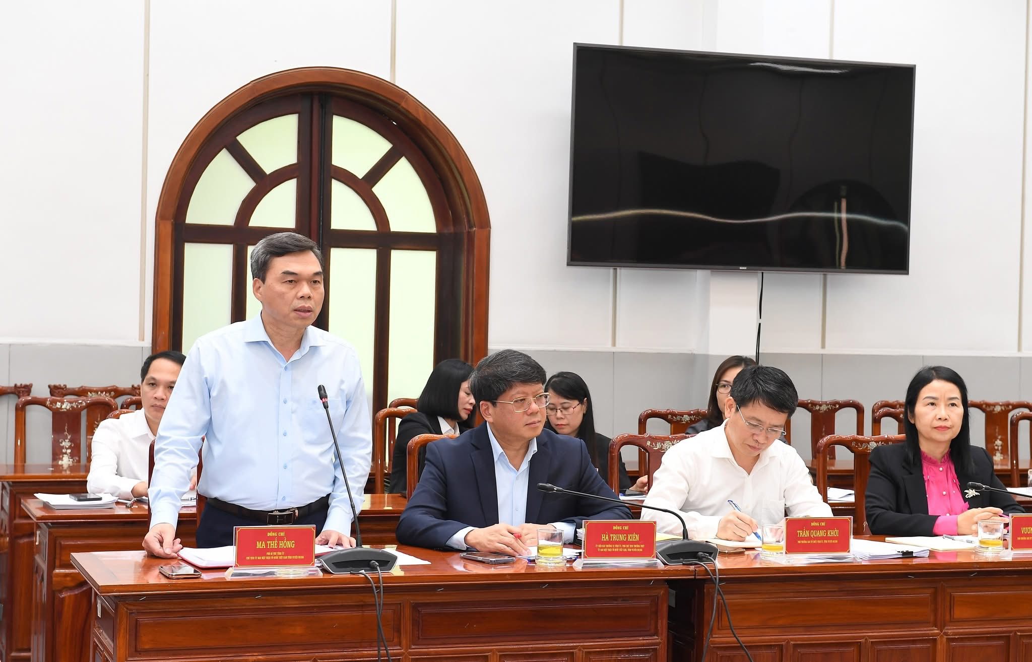 Đồng chí Ma Thế Hồng, Phó Bí thư Tỉnh ủy, Chủ tịch Ủy ban MTTQ Việt Nam tỉnh Tuyên Quang phát biểu tại buổi làm việc.