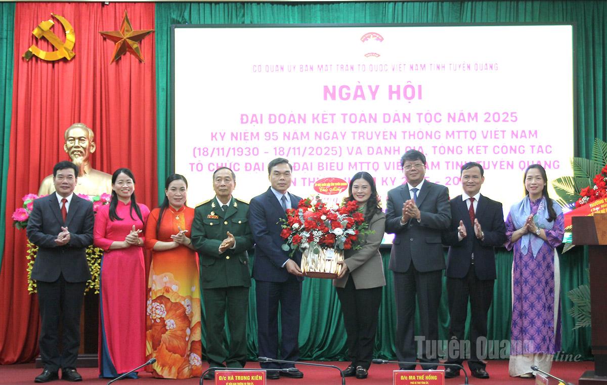 Chiều 18/11, Ủy ban MTTQ Việt Nam tỉnh tổ chức Ngày hội Đại đoàn kết toàn dân tộc năm 2025; kỷ niệm 95 năm Ngày truyền thống MTTQ Việt Nam (18/11/1930-18/11/2025) và đánh giá, tổng kết công tác tổ chức Đại hội đại biểu MTTQ Việt Nam tỉnh lần thứ I, nhiệm kỳ 2025-2030. Đồng chí Ma Thế Hồng, Phó Bí thư Tỉnh ủy, Chủ tịch Ủy ban MTTQ Việt Nam tỉnh dự, chỉ đạo Ngày hội.