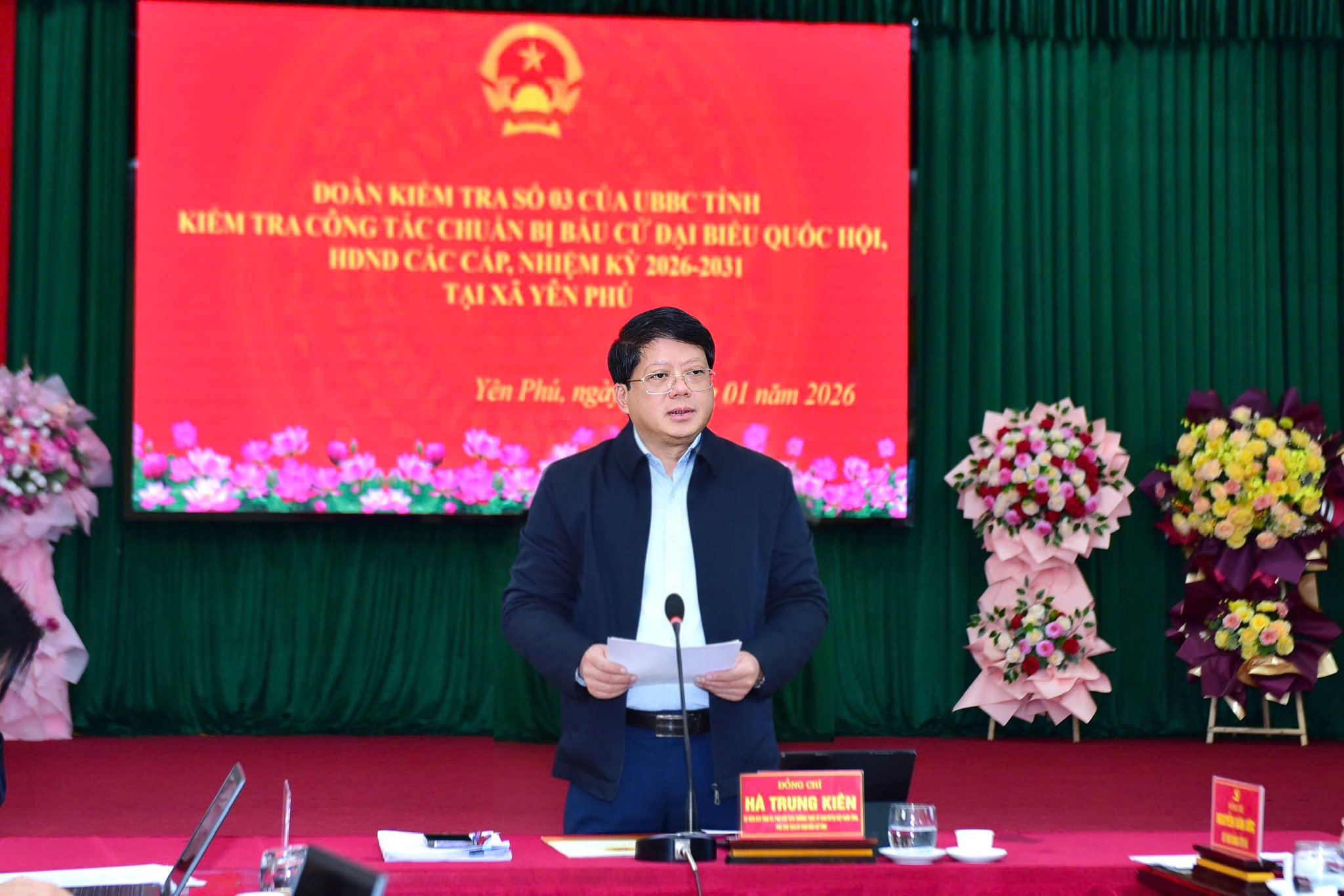 Chiều 6-1, Đoàn kiểm tra số 3 Ủy ban bầu cử tỉnh Tuyên Quang do đồng chí Hà Trung Kiên, Ủy viên Ban Thường vụ Tỉnh ủy, Phó Chủ tịch Thường trực Ủy ban MTTQ Việt Nam tỉnh, Phó Chủ tịch Ủy ban bầu cử tỉnh làm Trưởng đoàn đã kiểm tra công tác chuẩn bị bầu cử đại biểu Quốc hội khóa XVI và đại biểu HĐND các cấp, nhiệm kỳ 2026 – 2031 tại xã Yên Phú. Tham gia Đoàn kiểm tra có đồng chí Nguyễn Lam Sơn, Ủy viên BCH Đảng bộ tỉnh, Phó Trưởng ban Thường trực Ban Tuyên giáo và Dân vận Tỉnh ủy, Ủy viên Ủy ban bầu cử tỉnh.