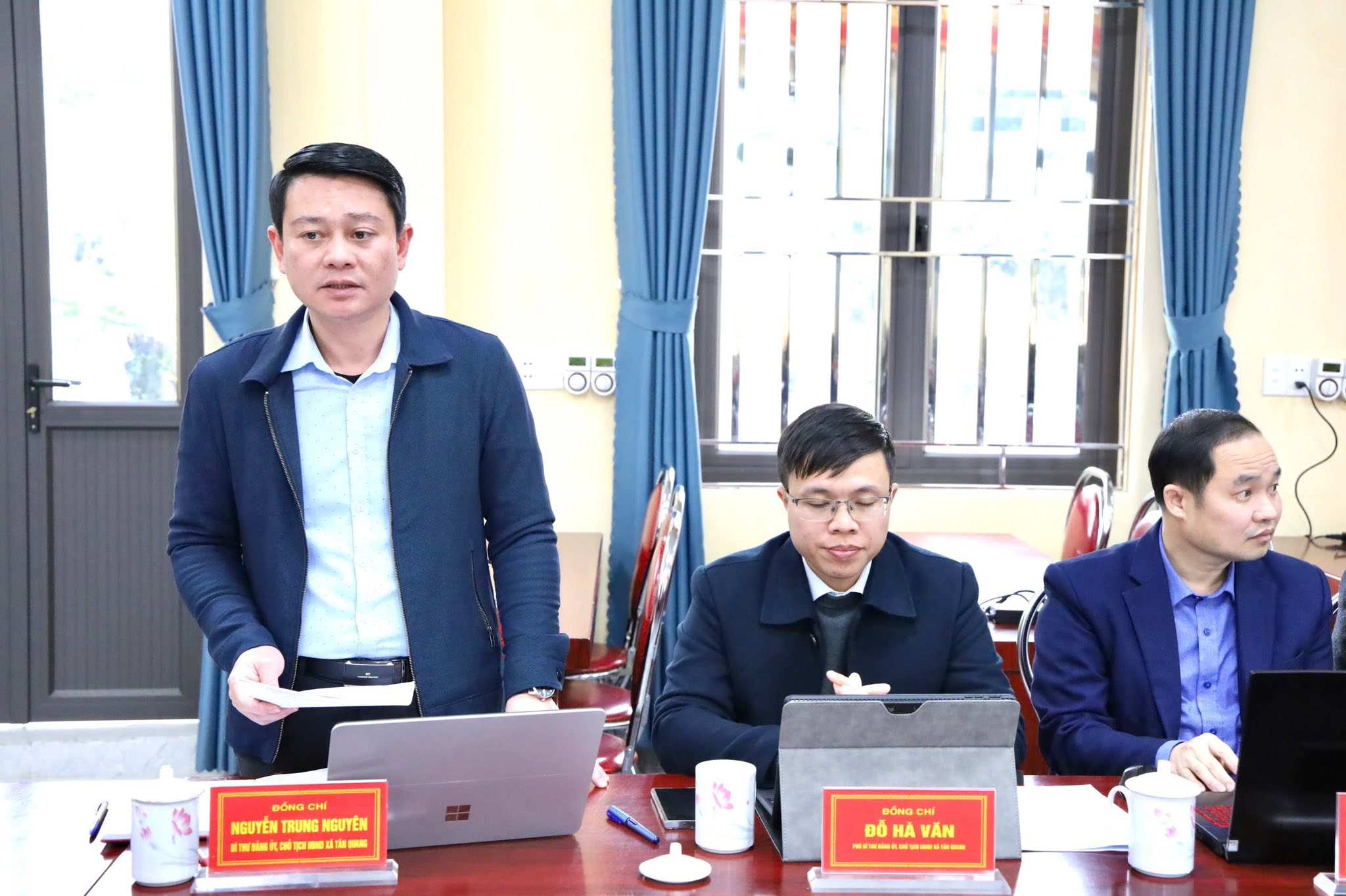 Dự làm việc với Đoàn có các đồng chí: Nguyễn Trung Nguyên, Bí thư Đảng ủy, Chủ tịch HĐND xã, Chủ tịch Ủy ban bầu cử xã; Đỗ Hà Văn, Phó Bí thư Đảng ủy, Chủ tịch UBND xã; lãnh đạo Ủy ban MTTQ, Công an, Ban xây dựng Đảng xã.