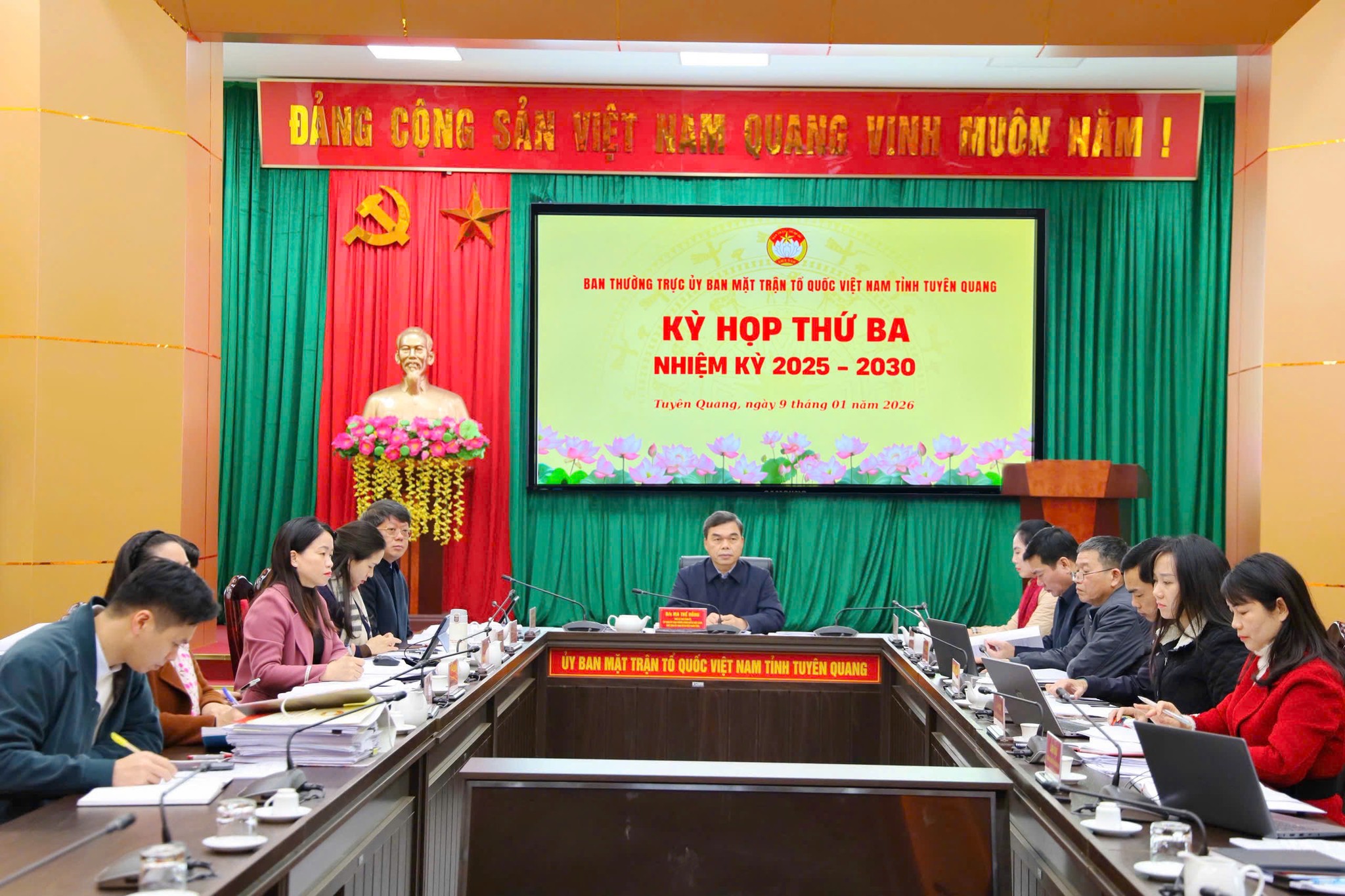 Tại kỳ họp cho ý kiến vào dự thảo các văn bản, trong đó xem xét cho ý kiến trực tiếp đối với dự thảo Kế hoạch gặp mặt chức sắc, chức việc các tôn giáo nhân dịp Tết Nguyên đán Bính Ngọ năm 2026; Tờ trình về dự thảo kế hoạch thăm, tặng quà cho hộ nghèo nhân dịp Tết Nguyên đán Bính Ngọ năm 2026; Tờ trình đề nghị thành lập Ban Chỉ đạo Cuộc vận động “Người Việt Nam ưu tiên dùng hàng Việt Nam” tỉnh Tuyên Quang; dự thảo Kế hoạch tổ chức tổng kết Chương trình phối hợp với Báo và Phát thanh, Truyền hình Tuyên Quang giai đoạn 2021 - 2026, ký kết Chương trình phối hợp thông tin, tuyên truyền giai đoạn 2026 - 2030; dự thảo hồ sơ Phương án tự chủ, tự chịu trách nhiệm về tài chính đối với đơn vị sự nghiệp công lập giai đoạn 2026 - 2030 của Trung tâm Văn hóa, Thể thao Thanh thiếu nhi tỉnh.
