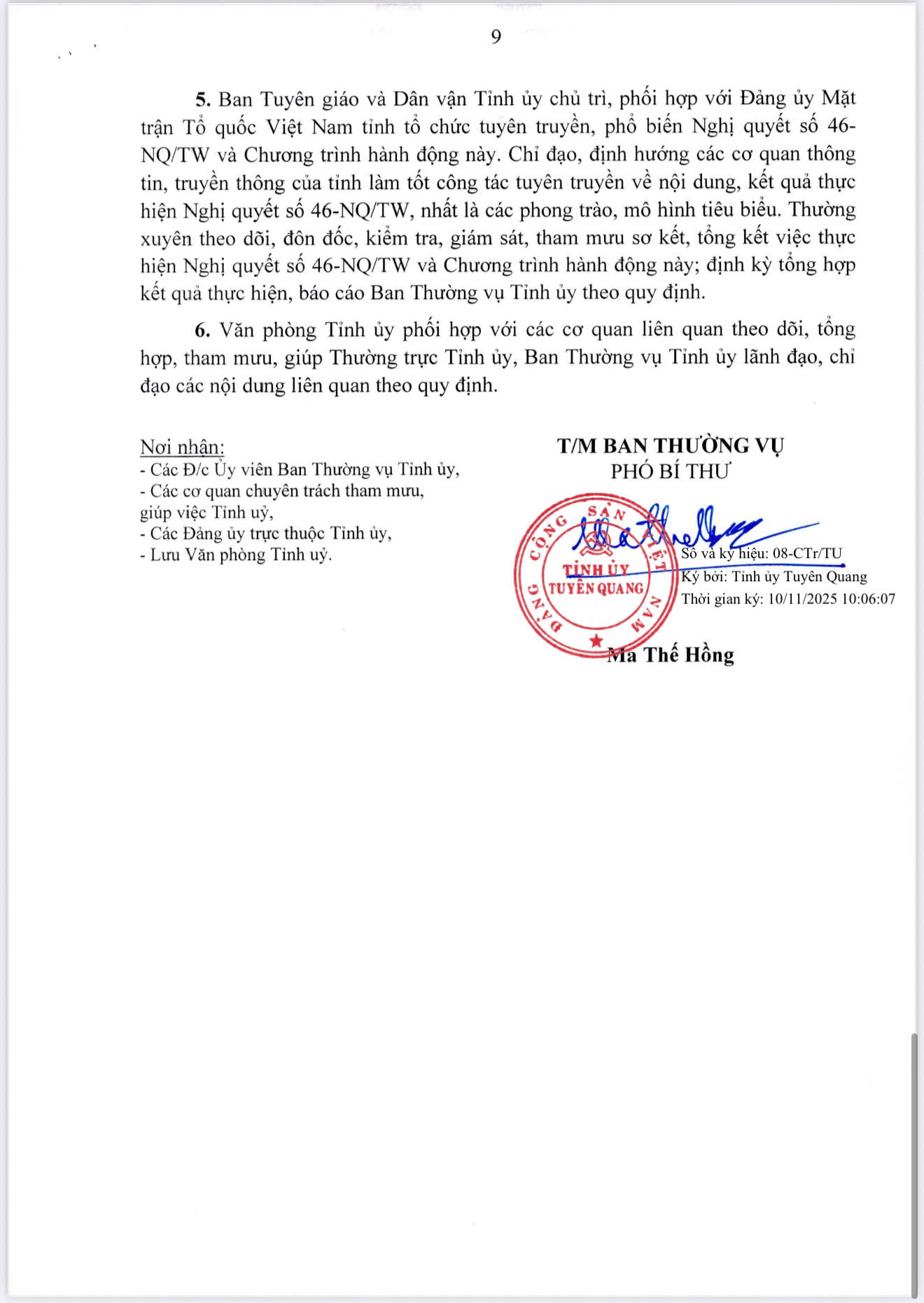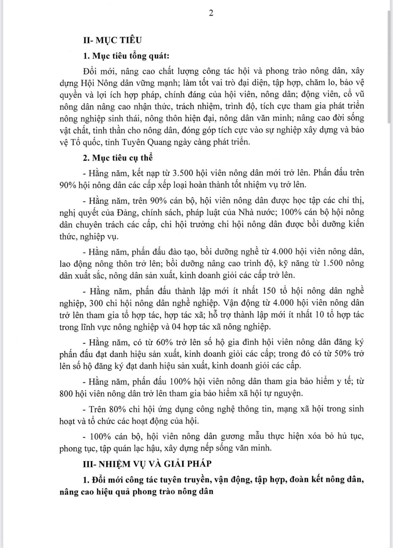 Thực hiện Nghị quyết số 46-NQ/TW về đổi mới, nâng cao chất lượng hoạt động của Hội Nông dân Việt Nam đáp ứng yêu cầu nhiệm vụ cách mạng trong giai đoạn mới, Ban Thường vụ Tỉnh ủy Tuyên Quang đã ban hành Chương trình hành động nhằm cụ thể hóa các mục tiêu, nhiệm vụ và giải pháp triển khai thực hiện trên địa bàn tỉnh. Ban Biên tập trân trọng đăng tải toàn văn Chương trình hành động của Tỉnh ủy Tuyên Quang để các cơ quan, đơn vị, cán bộ, đảng viên và nhân dân theo dõi, nghiên cứu và tổ chức thực hiện.