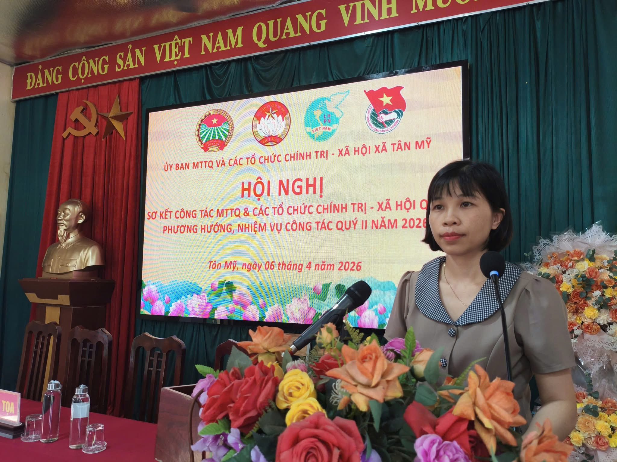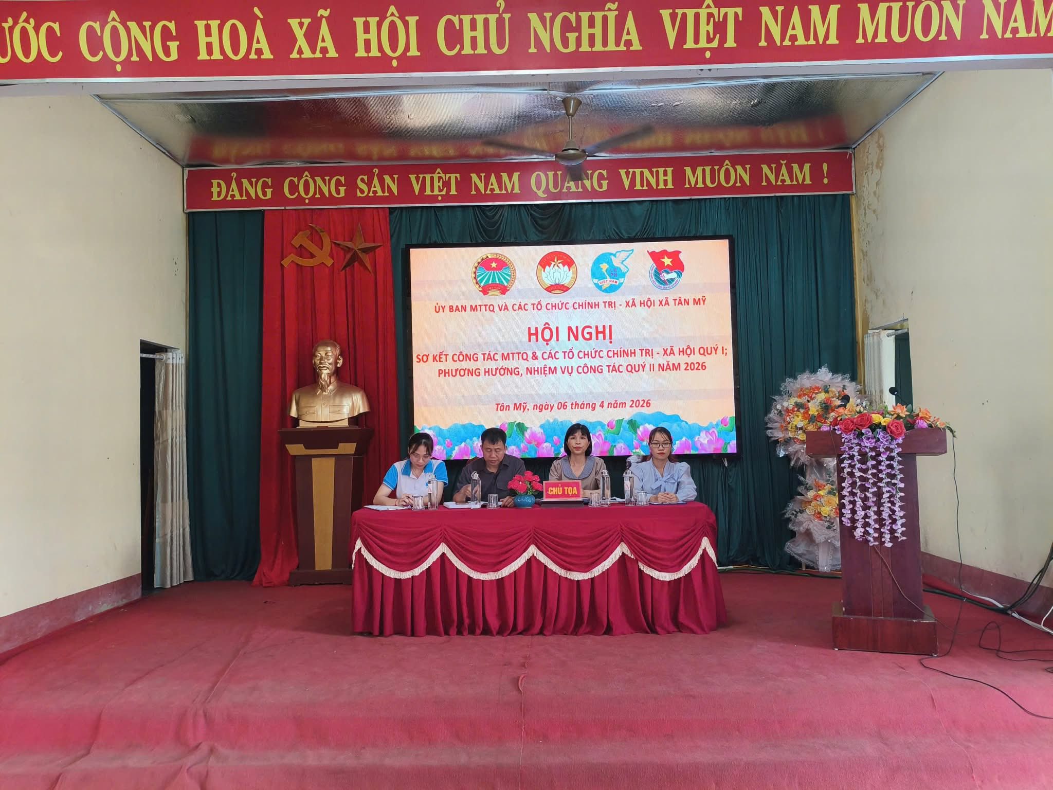 Chiều ngày 06/4/2026, Ban Thường trực Ủy ban MTTQ Việt Nam xã Tân Mỹ tổ chức Hội nghị sơ kết công tác Mặt trận, công tác hội và đoàn thể quý I năm 2026 . Hội nghị không chỉ đánh giá kết quả hoạt động trong 3 tháng đầu năm mà còn tập trung thảo luận các giải pháp đổi mới, nâng cao chất lượng phong trào tại cơ sở .