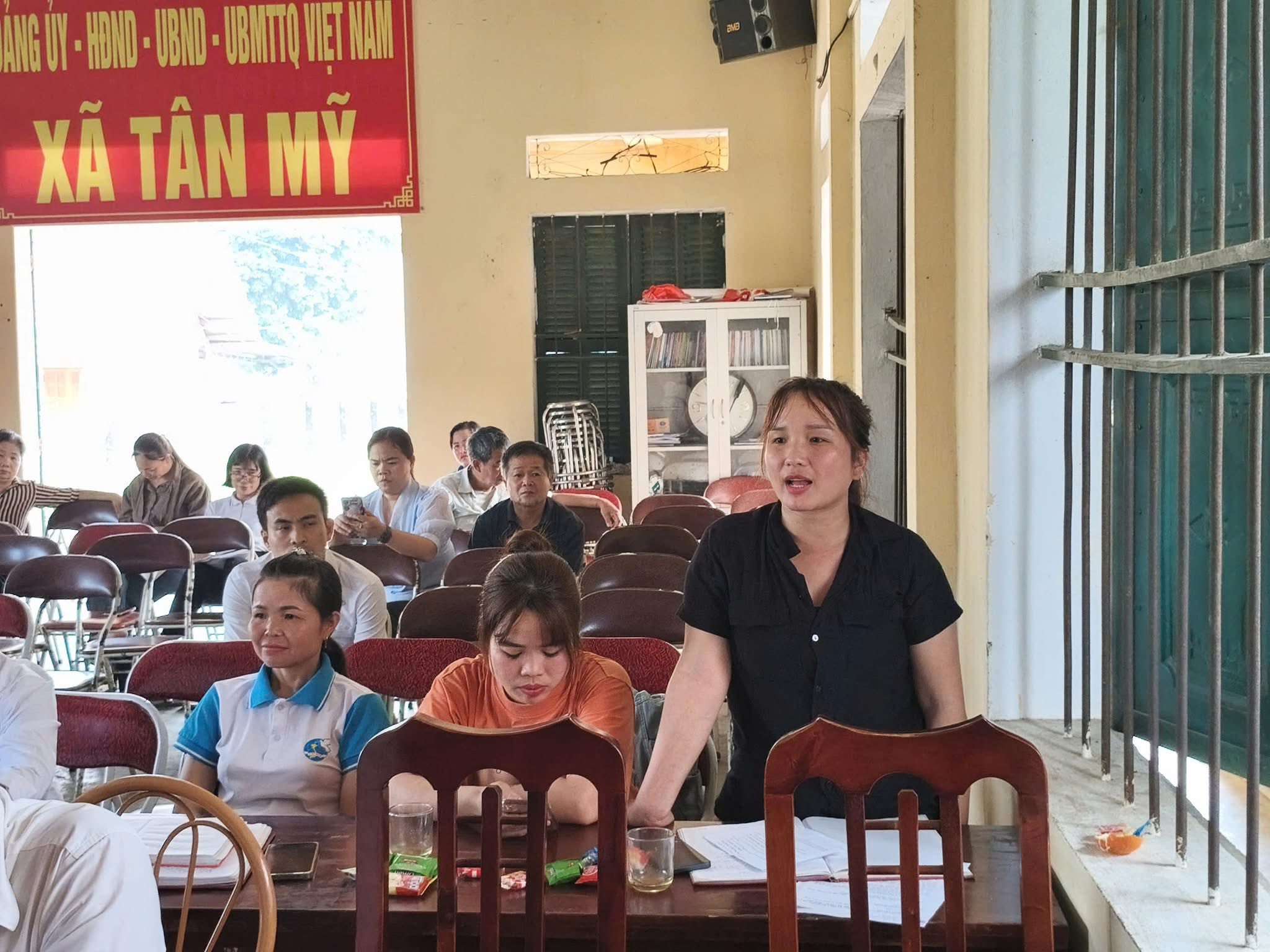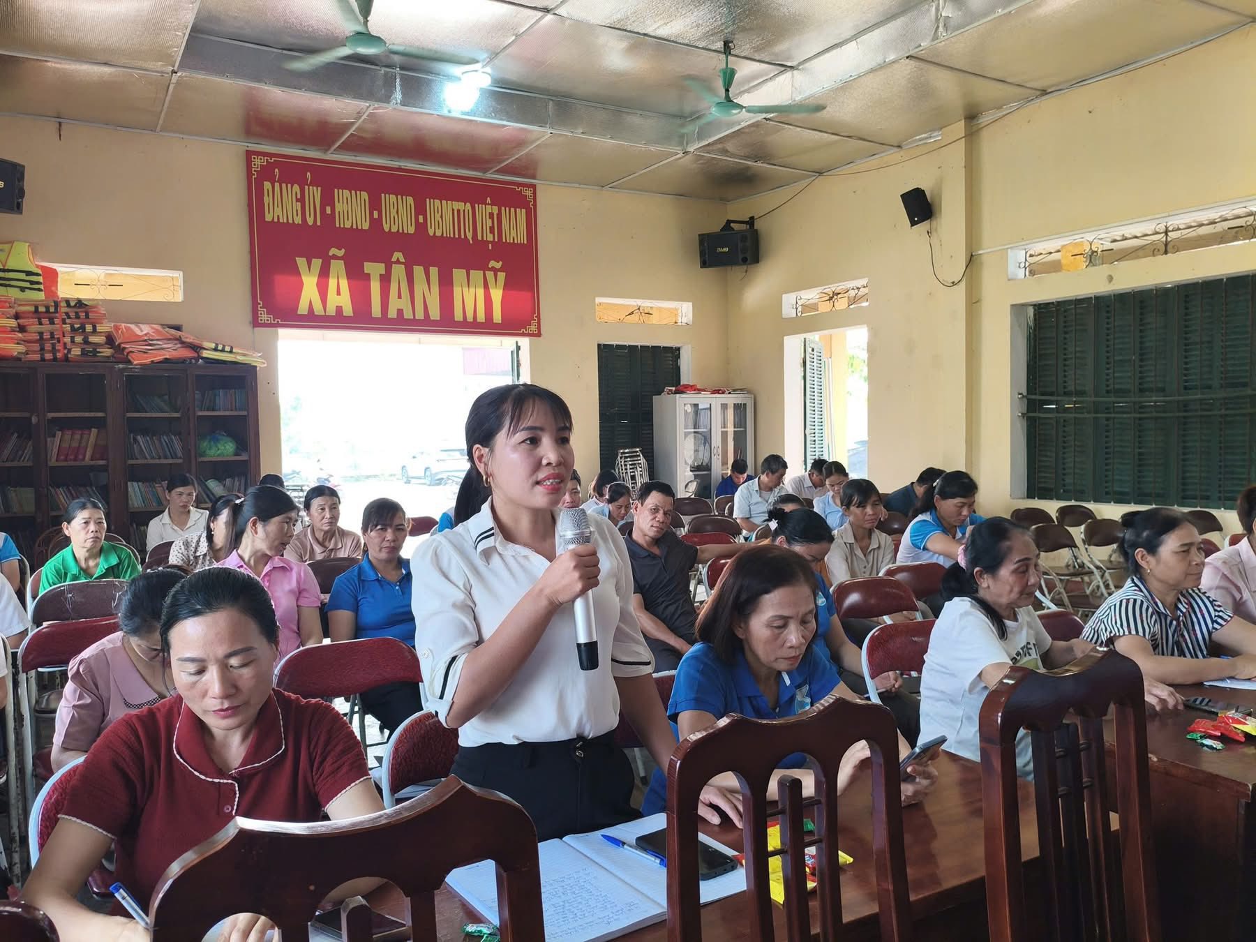 Đồng chí Hà Thị Mai, Ủy viên BTV Đảng ủy, Chủ tịch UBMTTQ xã phát biểu tại Hội nghị