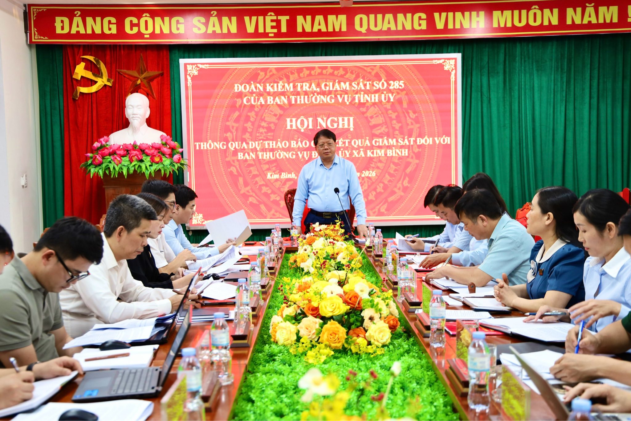 Tiếp tục chương trình làm việc, chiều ngày 04/4, Đoàn kiểm tra, giám sát số 285 của Ban Thường vụ Tỉnh ủy do đồng chí Hà Trung Kiên, Ủy viên Ban Thường vụ Tỉnh ủy, Phó Chủ tịch Thường trực Ủy ban MTTQ Việt Nam tỉnh làm Trưởng đoàn đã chủ trì hội nghị thông qua dự thảo báo cáo kết quả giám sát đợt 1 năm 2026 đối với Ban Thường vụ Đảng ủy xã Tri Phú, Kim Bình.