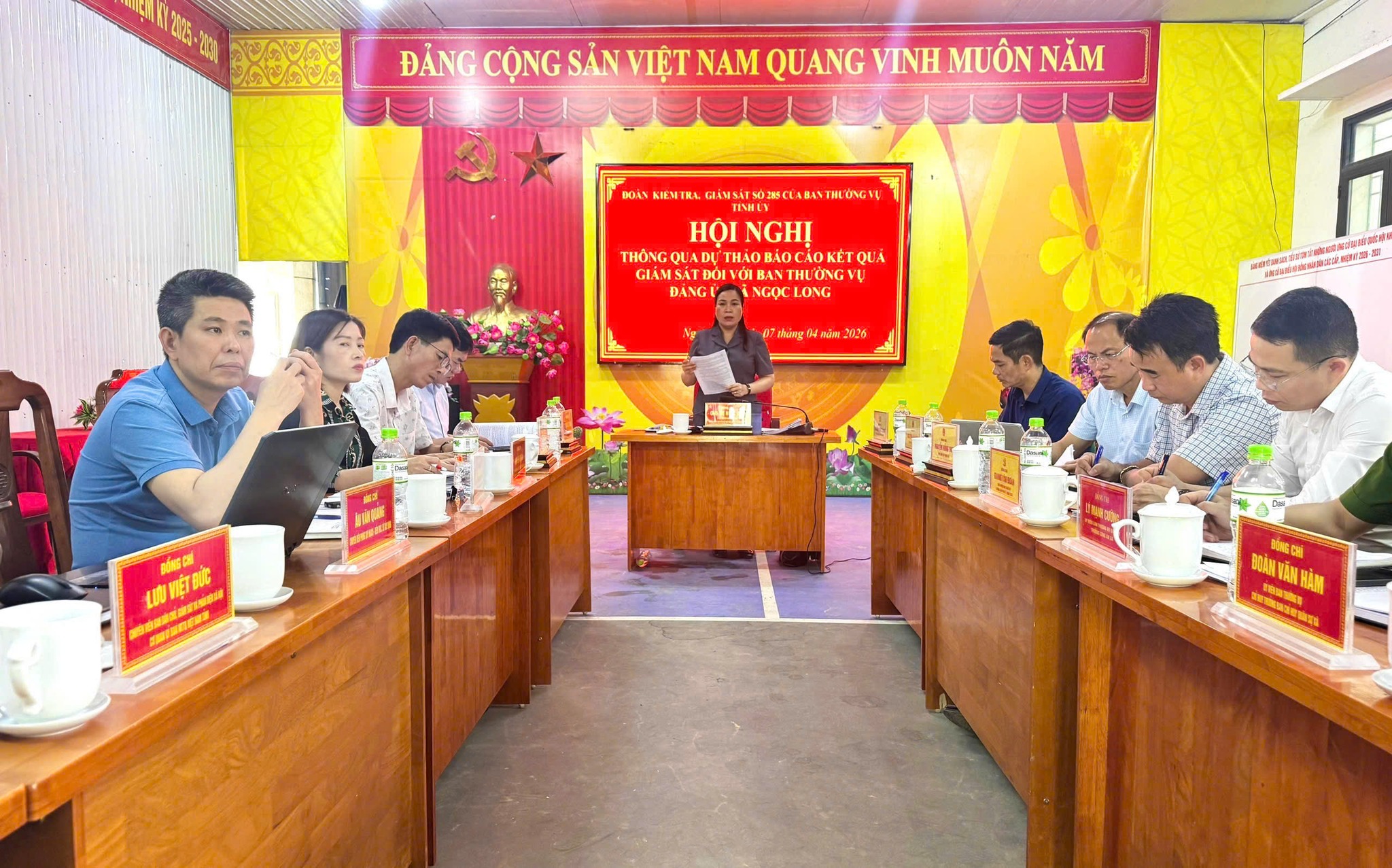 Ngày 07/4, Đoàn kiểm tra, giám sát số 285 của Ban Thường vụ Tỉnh ủy tổ chức hội nghị thông báo kết quả giám sát đợt 1 năm 2026 đối với Ban Thường vụ Đảng ủy xã Ngọc Long, xã Mậu Duệ. Đồng chí Chu Thị Ngọc Diệp, Ủy viên BCH Đảng bộ tỉnh, Phó Chủ tịch Ủy ban MTTQ Việt Nam tỉnh, Chủ tịch Hội Nông dân tỉnh- Phó Trưởng đoàn chủ trì hội nghị.
