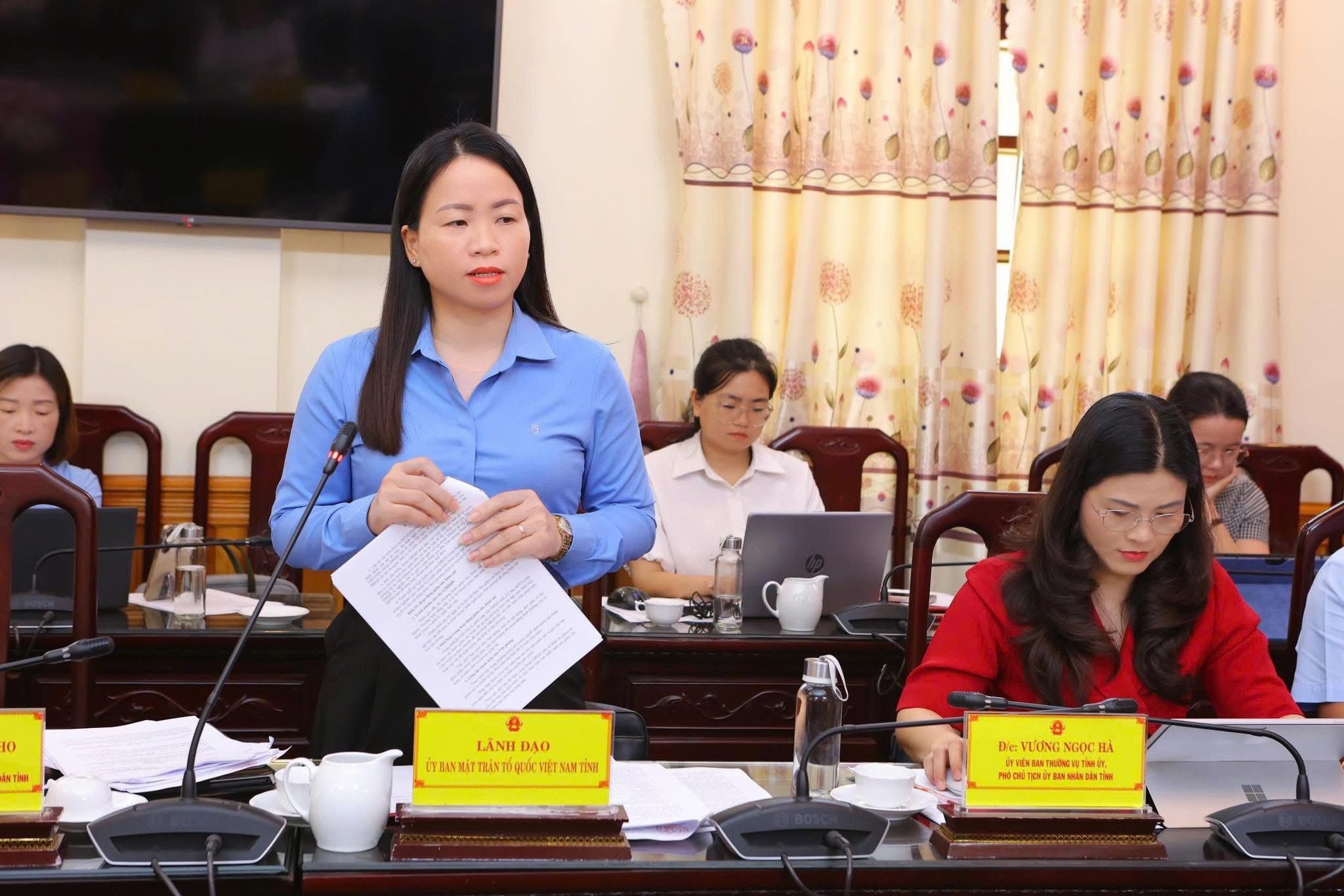 Đồng chí Trần Thị Hoàn, Phó Chủ tịch Ủy ban MTTQ tỉnh phát biểu ý kiến.