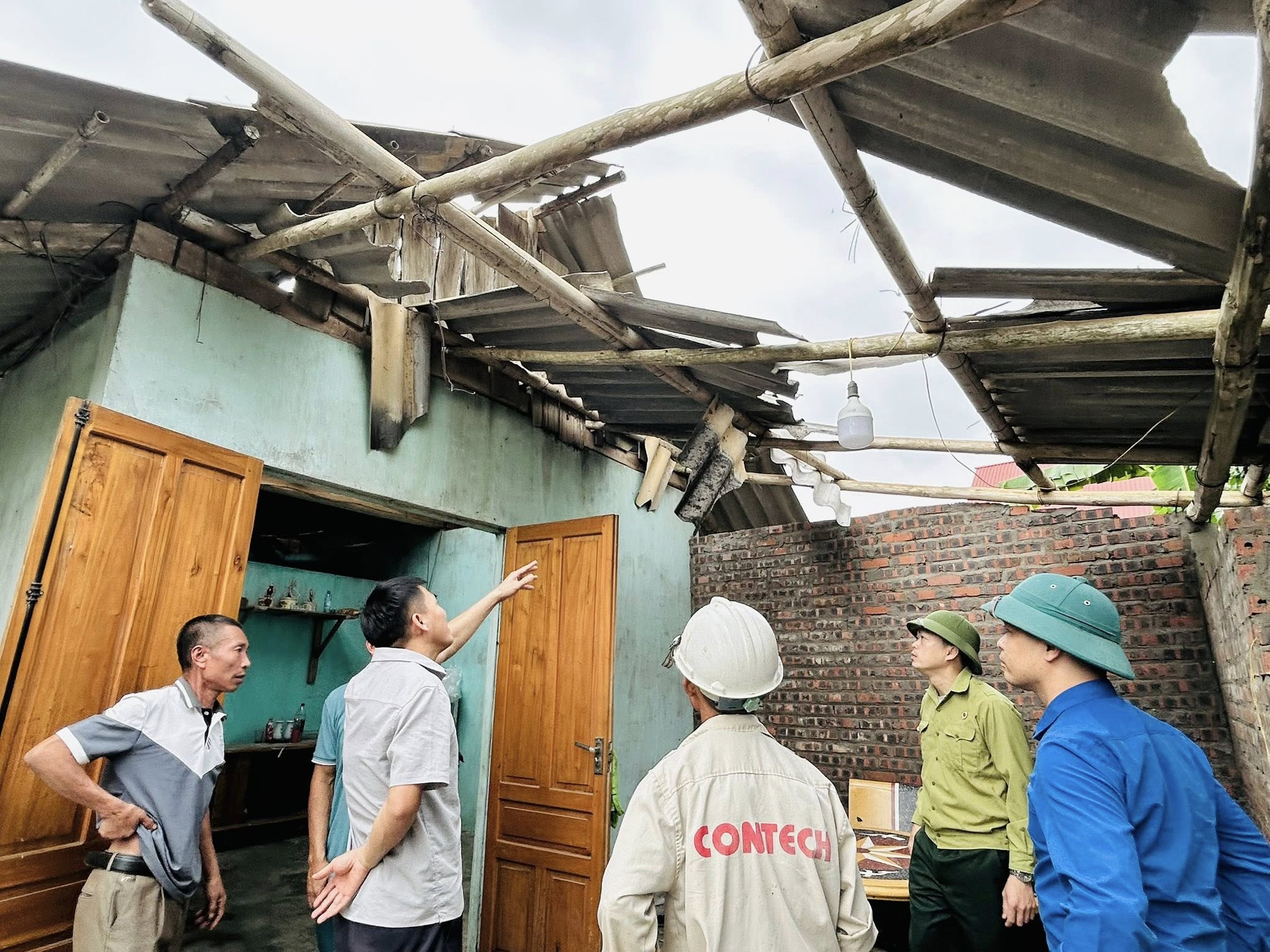 Đoàn công tác đã trực tiếp đến thăm gia đình ông Dương Văn Thành, là hộ bị ảnh hưởng nặng do trận lốc xoáy xảy ra đêm 17 và rạng sáng ngày 18/4/2026. Qua kiểm tra thực tế, ngôi nhà của gia đình ông bị tốc mái nghiêm trọng, hư hỏng nặng, không bảo đảm điều kiện sinh hoạt, gia đình phải tạm thời di dời để bảo đảm an toàn.