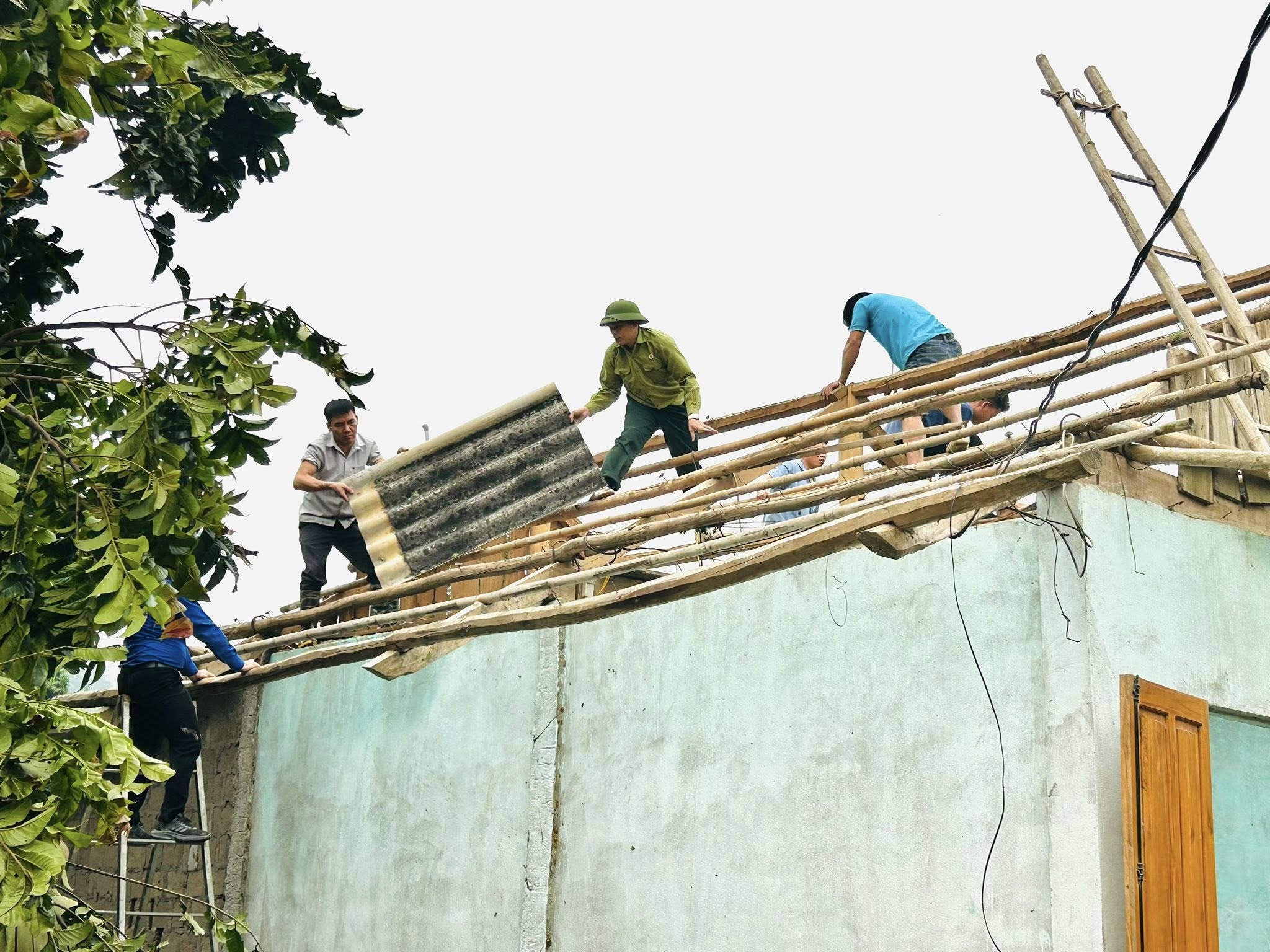 Cùng với đó, phát huy tinh thần đoàn kết, tương thân tương ái, đoàn viên, hội viên các tổ chức chính trị - xã hội và đông đảo Nhân dân trên địa bàn đã tích cực tham gia hỗ trợ gia đình tháo dỡ phần mái nhà bị hư hỏng, thu dọn vật liệu cũ, chuẩn bị các điều kiện cần thiết để tiến hành tu sửa, lợp lại mái nhà.